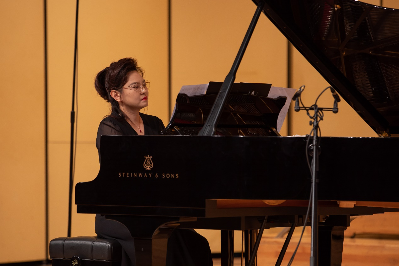 石慧老师携海淀区青少年活动管理中心合唱团、首都师范大学合唱团、北航学生交响乐团木管五重奏分别演奏了《军港之夜》、《美丽的南海》与《吉普赛之歌》,也带来了个人独奏《康康舞曲》与经典曲目《黄河颂》《保卫黄河》。
