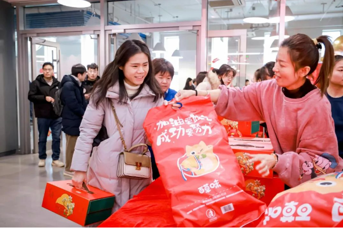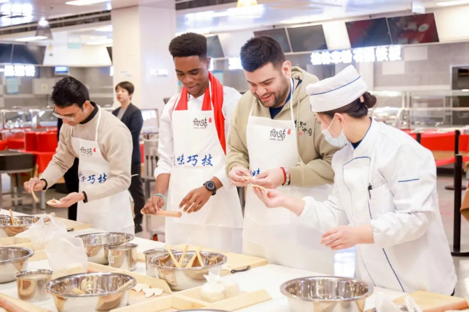 在包饺子现场,校领导和同学们一起参与到热火朝天的活动中,和面、拌馅、擀皮,在亲切的问候与暖心的家常话中包出一个个充满年味的团圆饺子,让同学们体会年的味道、感受家的温暖。