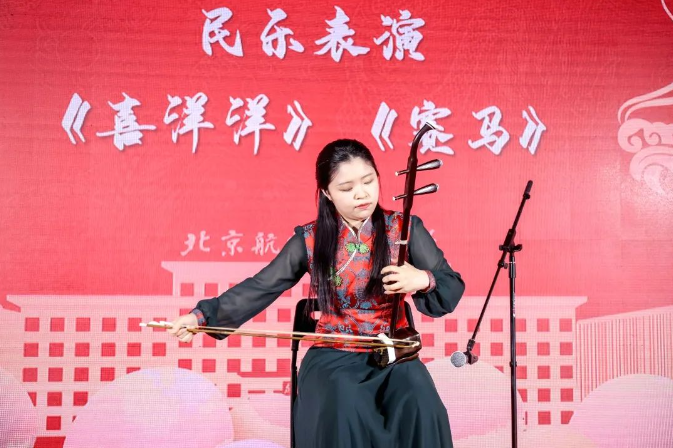 大家一边品尝着年味自助餐,一边欣赏着校团委艺术团同学和辅导员们精心准备的民乐表演《赛马》《喜洋洋》、舞蹈表演《Wonderful U》、武术表演《龙腾九霄》、歌曲演唱《相亲相爱》等节目,体验着丰富多彩的互动游戏。活动现场祝福不停、掌声不断,大家沉浸式体验年味十足的欢乐海洋。