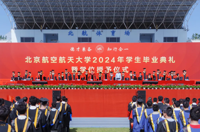 典礼结束后,举行2024届学位授予仪式。在熟悉的校歌旋律中,校院领导为在场的毕业生一一拨苏正冠,送上美好祝愿,临别寄语再嘱咐,开启未来新征程。此刻的高光时刻,是对青春年华最隽永的见证,愿每一位即将远航的北航人,传承红色基因,凝聚磅礴力量,矢志空天报国,服务强国建设。跃入人海,各有风雨灿烂,奔涌向前,步伐永不停歇,祝优秀的2024届毕业生们奔赴山海,未来可期。