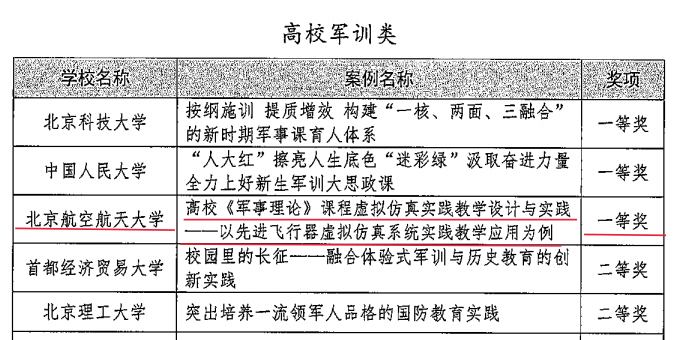 在2024年学校国防教育和学生军训优秀案例评选中,我校申报的《高校〈军事理论〉课程虚拟仿真实践教学设计与实践——以先进飞行器虚拟仿真系统实践教学应用为例》获评高校国防教育类一等奖;《在军训中打造校园国防尖兵的探索与实践——以betway西汉姆联“猎鹰突击队”建设为例》荣获高校军训类优秀奖,北航实验学校中学部《国防教育融五育红色基因薪火传》获中小学校组一等奖。在第十二届北京高校国旗护卫队展示赛中,betway西汉姆联国旗护卫队荣获一等奖。北京市学生国防素养大赛(高校组)中,北航学子荣获三等奖。
