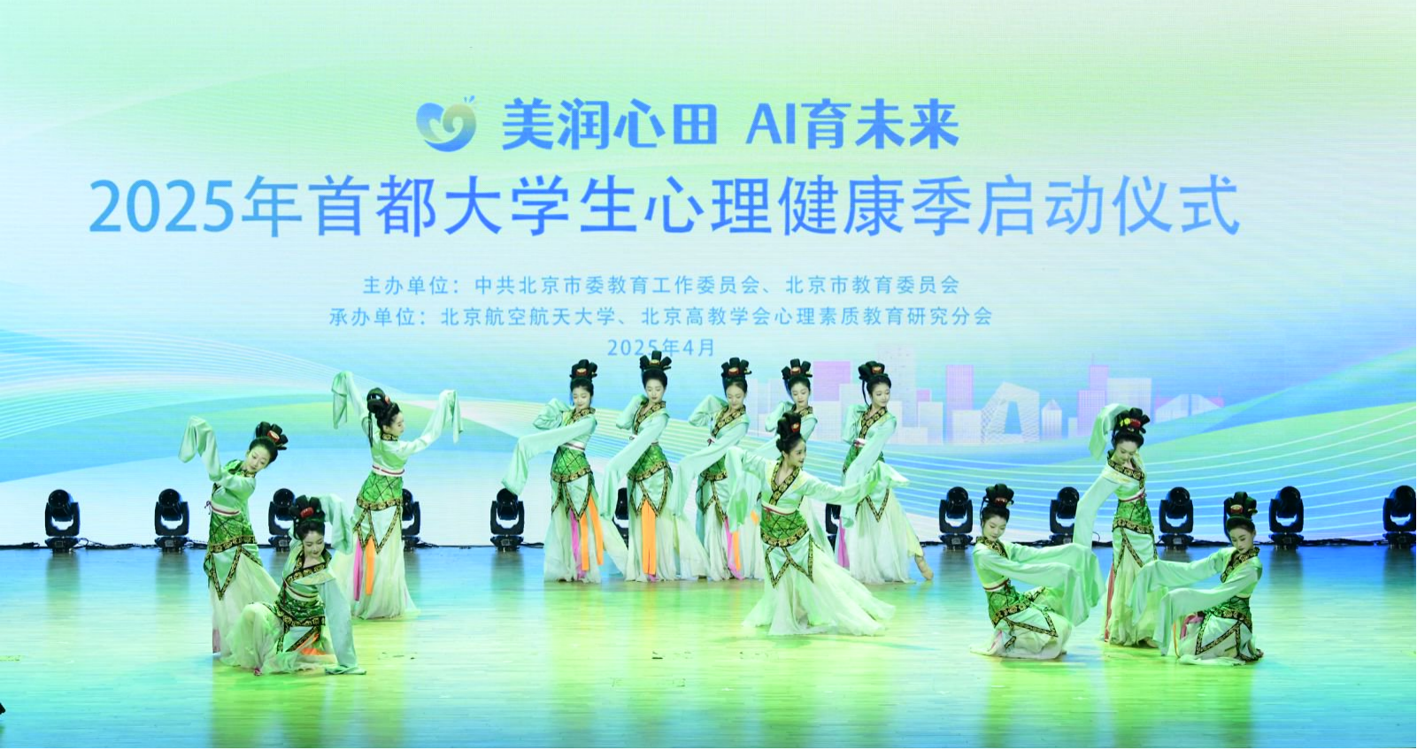在艺术展演环节,四所高校联袂呈现主题汇演,精彩纷呈。北京舞蹈学院带来舞蹈《踏歌》,以优雅而富有张力的舞姿展现传统韵律与现代节奏的融合之美;中国音乐学院演奏民族室内乐《花好月圆》和《彩云追月》,以深情旋律诠释中华民族音乐的独特魅力与文化底蕴;中央民族大学的舞蹈《奔腾》节奏明快、动感十足,传递出青春活力与积极心理力量的和谐共鸣;首都体育学院则通过心理微课《太极拉伸》带来沉静内敛的身心体验,展示运动与心理健康相辅相成的育人理念。整场展演融合艺术表达与心理教育,呈现出高校育人工作的多元探索,为现场观众带来一场温暖而振奋的视听盛宴。