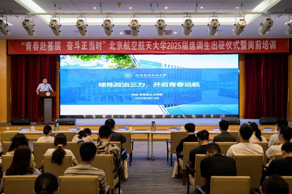 出征仪式后,马克思主义学院副教授刘佳以《锤炼“政治三力”,开启青春远航》为题展开岗前培训首讲。他系统梳理了选调生制度自1965年开启以来的发展脉络,通过历史案例深入解读习近平总书记提出的“政治三力”,为学生未来的基层工作筑牢理论与实践根基。6月15日,学校还为2025届选调生开展了为期一天的公文写作培训。