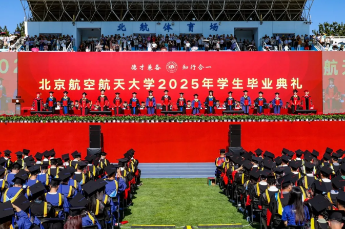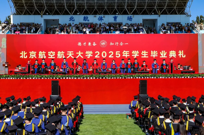 典礼结束后,在体育馆内举行了2025届学位授予仪式。在熟悉的校歌旋律萦绕下,校院领导为毕业生们一一拨穗正冠,授予象征学识与责任的学位证书。愿每一位即将展翅的北航学子,赓续以“空天报国”为内核的北航精神,汲取团结奋进伟力,胸怀家国社会天下,勇担复兴伟业重任。祝2025届卓越的毕业生们前程似锦,未来可期。