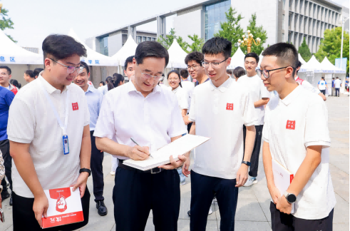 在新生宿舍,赵长禄、王云鹏仔细询问同学们的生源地及所学专业,了解新学期准备情况,勉励大家充分利用好学校的各种优质资源,勤奋学习、团结协作、共同进步,努力成长为一流人才,将所学服务国家战略需求,成为祖国和人民可期的栋梁之材。