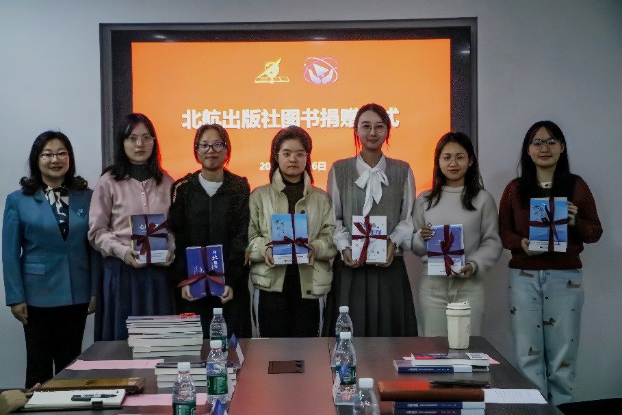 11月6日下午,北航出版社图书捐赠仪式在学生中心会议室举行。副校长邓怡,资产公司总经理顾广耀,资产公司副总经理、出版社董事长刘德生,出版社总经理兼总编辑王雷华,学生中心主任纪一鹏,学生中心、出版社、北航学院相关书院的领导,以及备考学生代表和新生代表共同出席仪式。