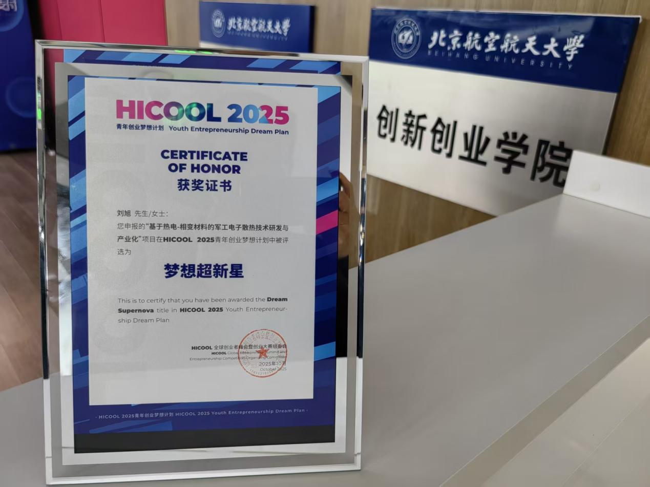 此次荣获HICOOL“梦想超新星”,不仅是对项目技术先进性与应用前景的高度认可,也使团队获得直接晋级2026年HICOOL全球创业大赛初赛的资格,并将入驻“梦想计划加速营”,获得融资对接、团队建设与产业链资源整合等专项支持。刘旭表示:“未来我们将持续深耕军工电子散热领域,并逐步拓展至服务器、人形机器人等民用高端市场,力争在2027年实现上规目标,为我国电子散热技术的自主可控与产业升级贡献北航智慧。”